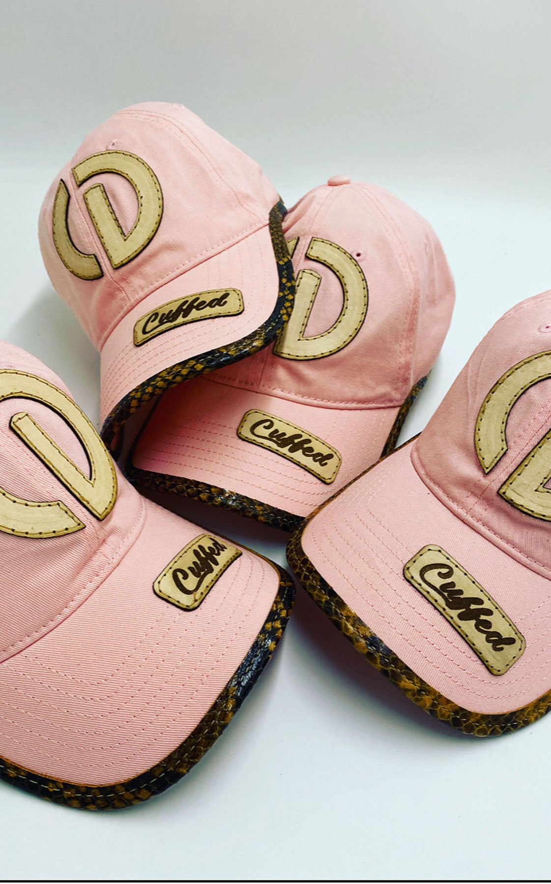 Custom Leather repurposed sports cap. Classic flagship CD logo with leather Cuffed script tab on brim. Copper-Head leather trim and veg tan leather adjustable strap. This hat is a head turner & full of interesting details.