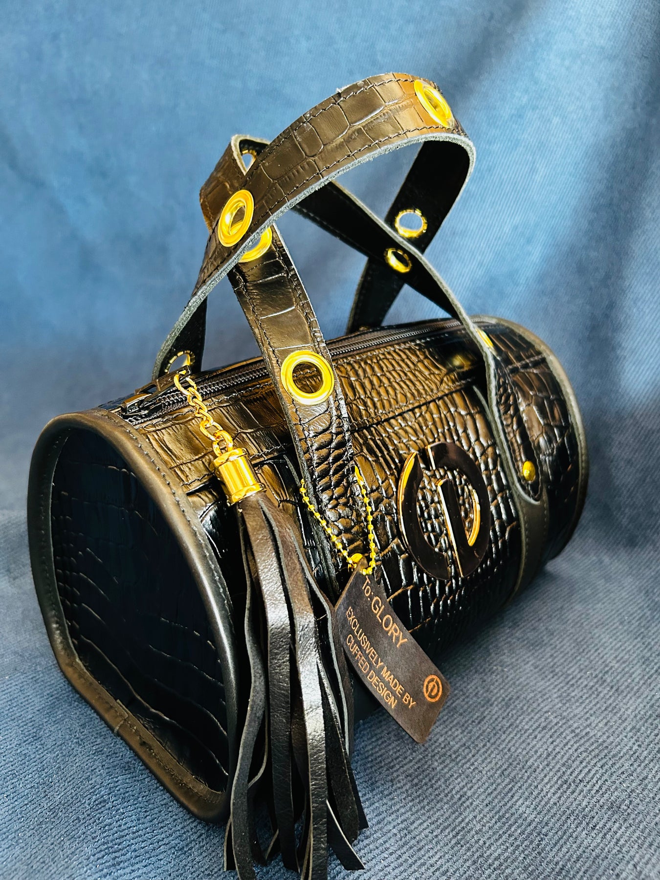 • Handcrafted Mucca Black crocodile leather with Monte Carlo full-grain accents