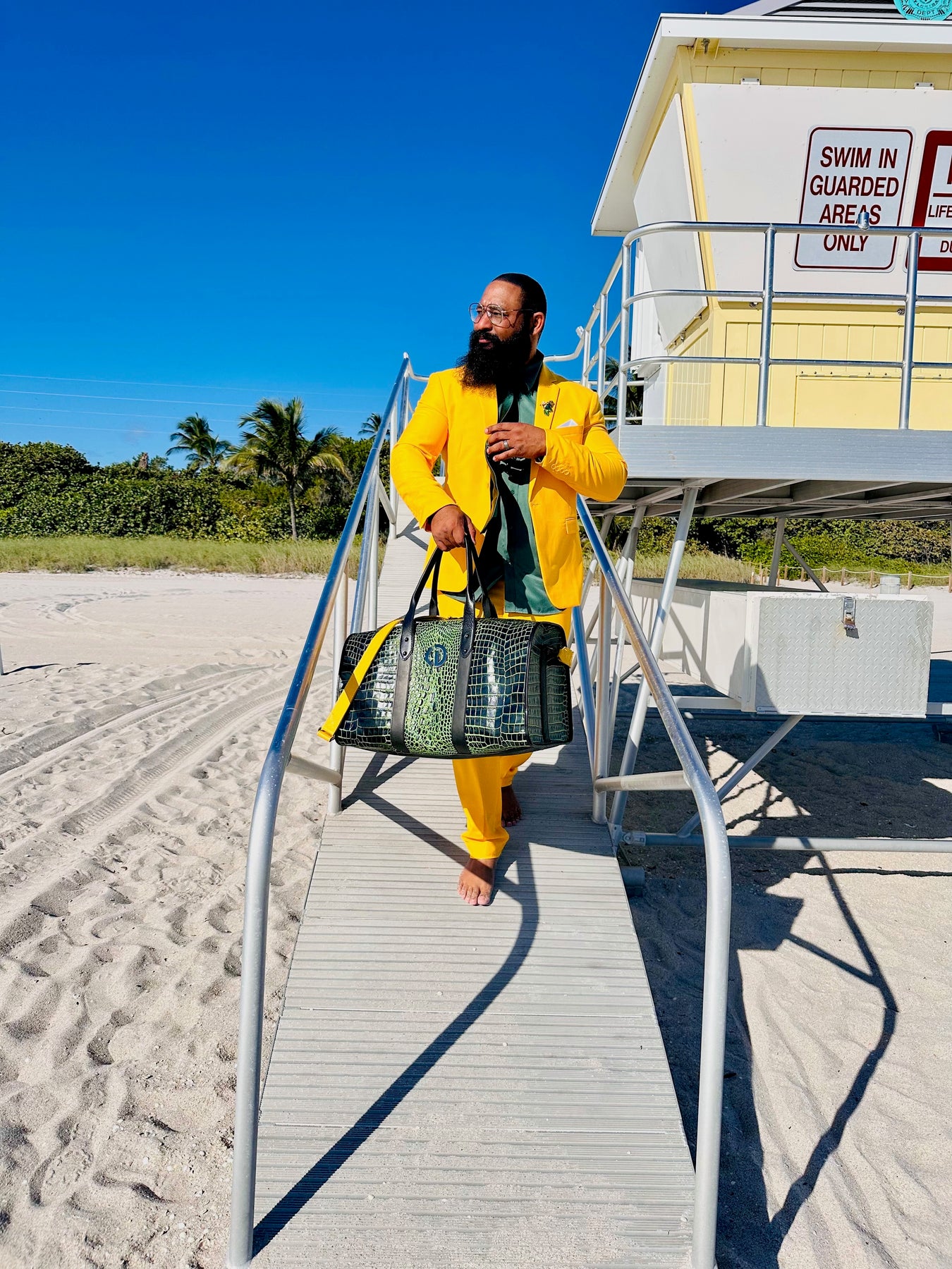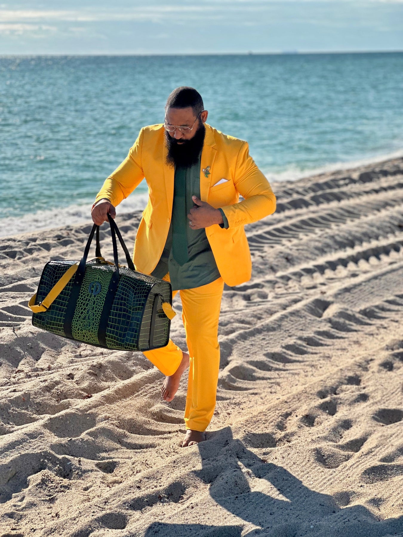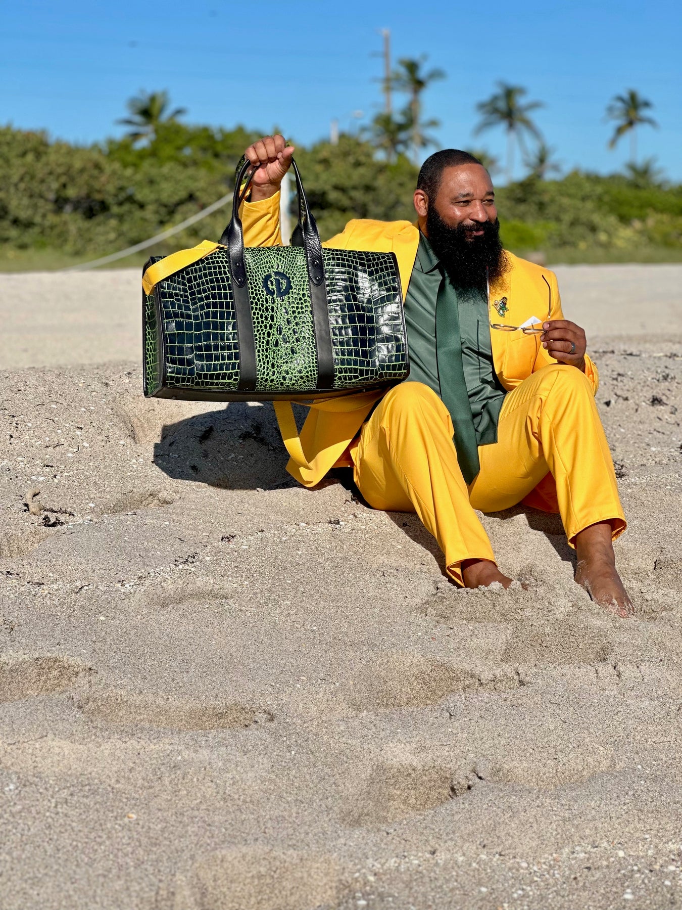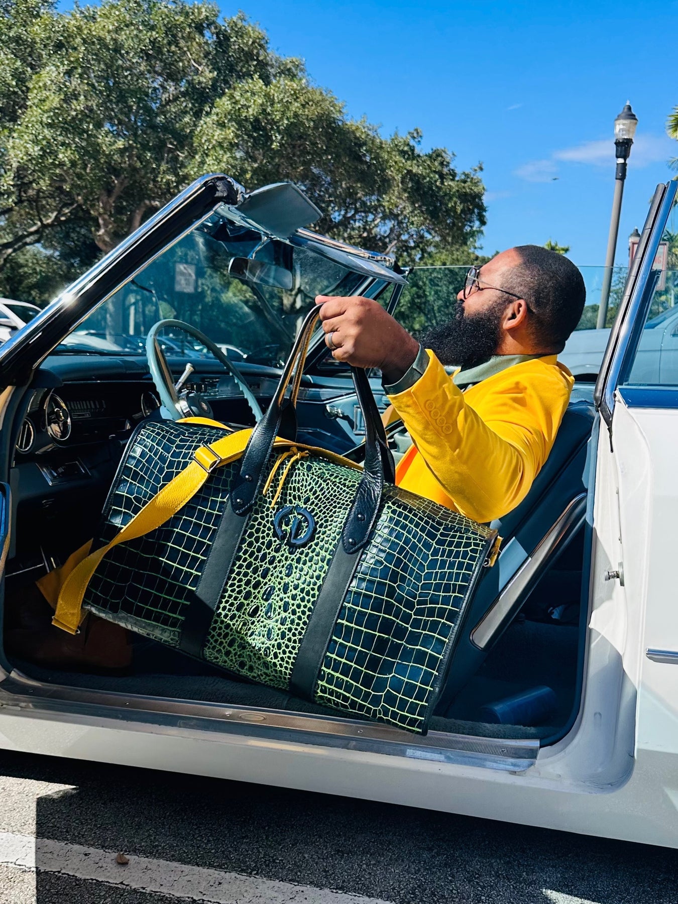 Where precision meets prestige — the Midnight Meridian Duffle embodies timeless craftsmanship and bold sophistication. Designed for the modern traveler with an eye for luxury, this handcrafted statement piece blends exotic texture, refined detail, and unparalleled artistry.